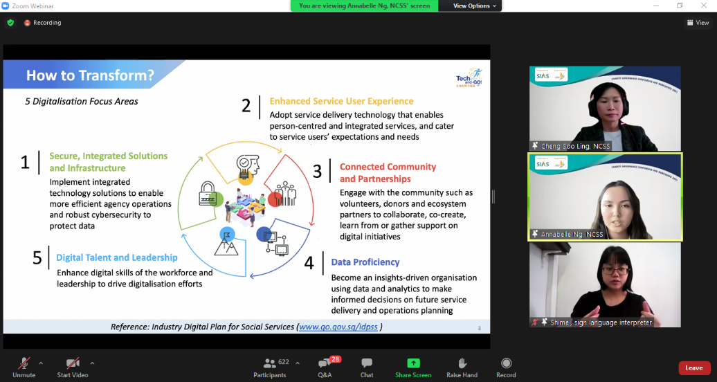 Panelists: Professor Ho Yew Kee, Member, Charity Council, Mr. James Tan Kim Yew, CEO, Touch Community Services Limited, Mr. Bruce Liew, Director, Sector Digitalisation & Transformation, NCSS, Ms. Yip Yuen Fong, Executive Director, iShine Cloud Limited